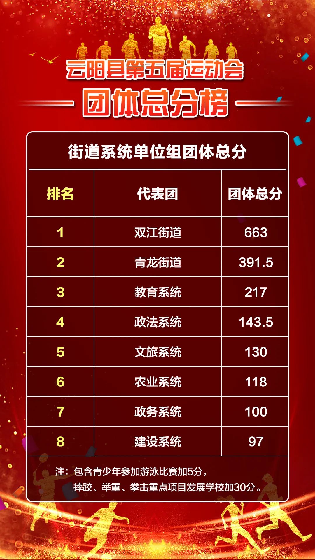 各组别团体总分前八名