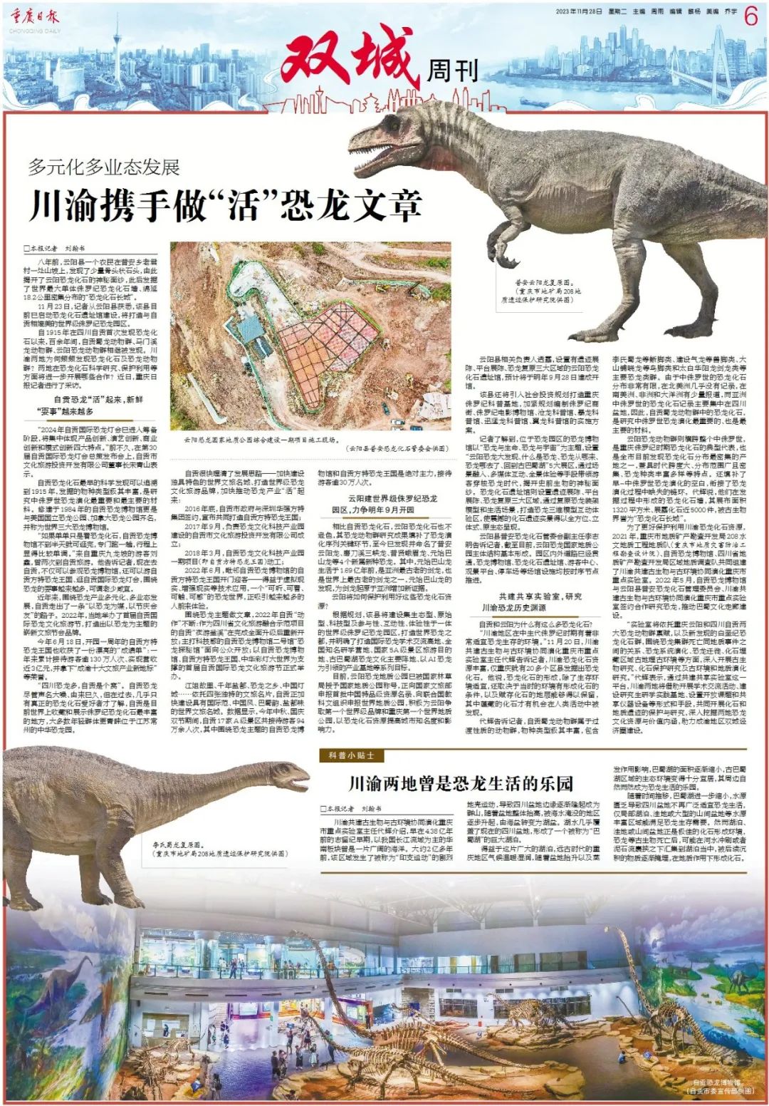 自1915年在四川自贡首次发现恐龙化石以来,百余年间,自贡蜀龙动物群、马门溪龙动物群、云阳恐龙动物群相继被发现。川渝两地为何频频发现恐龙化石及恐龙动物群?两地在恐龙化石科学研究、保护利用等方面将进一步开展哪些合作?近日,重庆日报记者进行了采访。