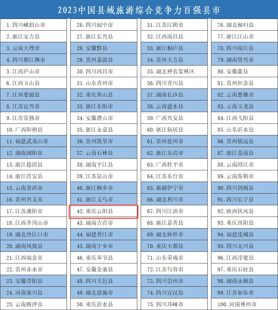 “2023年中国县域旅游综合竞争力百强县市”名单
