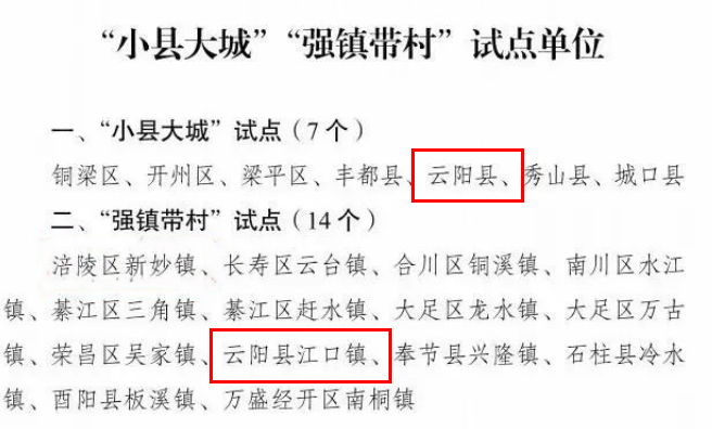 《重庆市“小县大城”“强镇带村”试点工作方案》印发