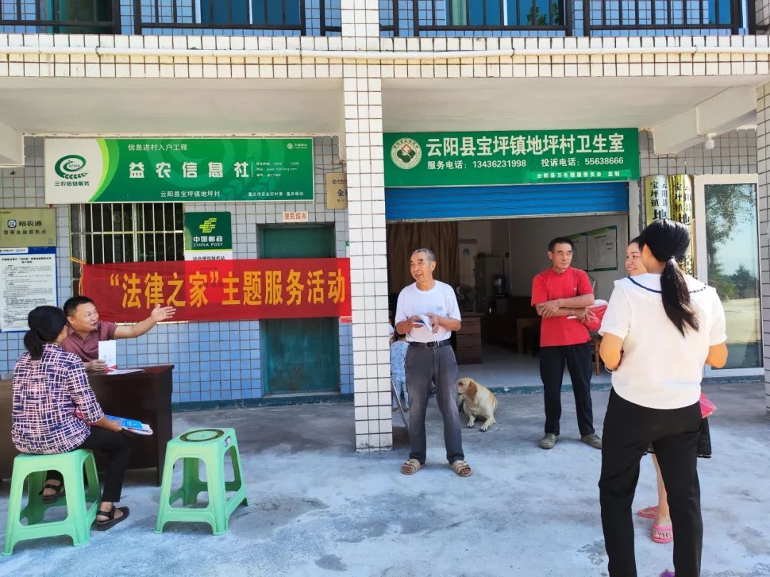 “刘叔叔,今天村办公室这里在开展‘法律之家’主题服务活动,宣传法律法规,有律师提供服务,你上次说的问题可以去咨询一下他们。”宝坪镇地坪村村支书看到村民刘大爷从村办公室经过,急忙招呼他来找律师咨询。