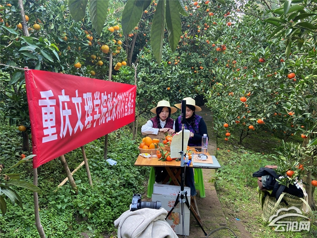 “家人们,这些脐橙都是我们刚刚从树上现摘的,我们现在就在它的产地,云阳县巴阳镇阳坪村……”在巴阳镇阳坪村一处柑橘种植基地,重庆文理学院经济管理学院的两名学生,正对着手机摄像头讲解手中的脐橙,通过网络直播的方式帮助当地村民销售柑橘。直播过程中,主播用饱满的热情和生动的语言,从柑橘的地理环境、种植方法、品质、口感等多角度向大家展开介绍,吸引了不少网友关注并购买。