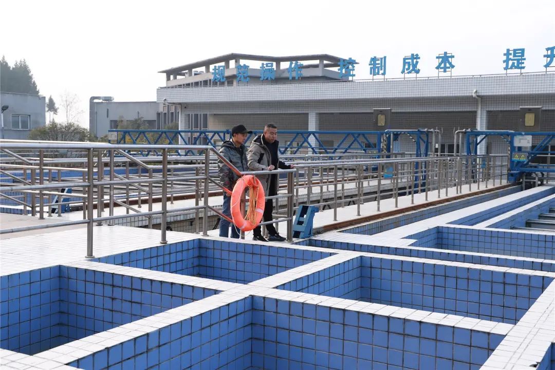 在肖家湾水厂,一排标准化的厂房里,加药消毒间、污泥脱水间等功能室一应俱全,厂房内干净整洁,各类机械忙碌运作,工作人员正检查设备。消毒间和中控台每天24小时人员值守,无死角监控整个净水工艺流程。