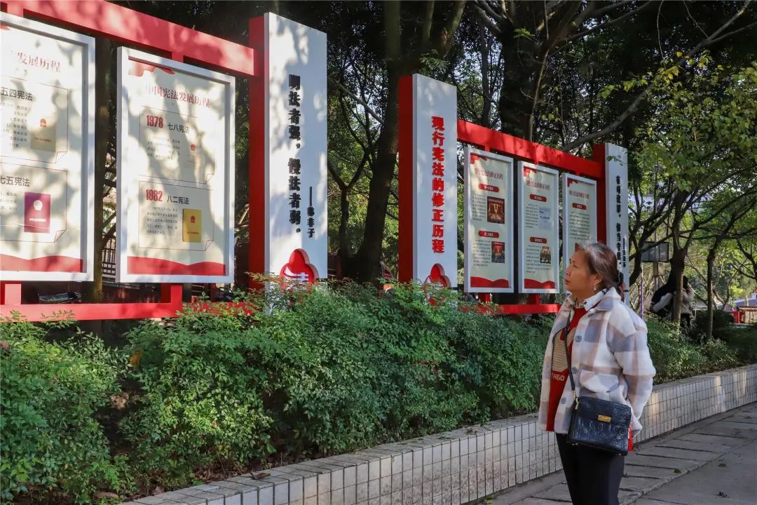 在廉政法治主题公园建设过程中,云阳将城市环境整治和法治文化阵地建设紧密结合起来,通过融入法治元素重新将废弃长廊重新焕发生机,成为附近居民普法学习、休憩娱乐的好去处。