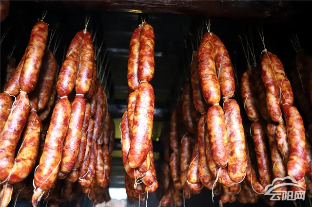 铜鼓村驻村第一书记段勋兴介绍道,今年招商引进云安镇的重庆壹新壹艺食品有限公司,主要以加工风味肉制品为主,于今年9月正式投入运行,建设标准化厂房共1900㎡,租赁厂房共1200㎡,设有5个传统烟熏烘房,配置多套智能风干系统,采用最传统的古法烟熏,1:1制作出老腊肉的味道,可实现每天加工猪肉5吨,提高农产品价值约35%。可以看到,工人们正在加工大批次的腊味订单,洗肉、腌制、烘烤,每一道工序都井井有条。