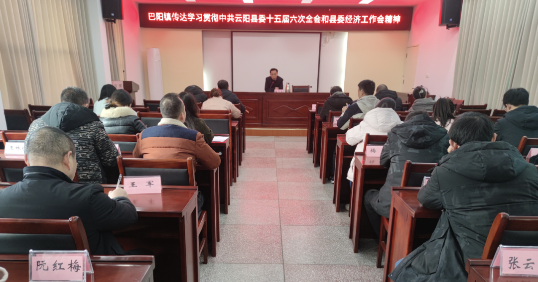 巴阳镇召开会议,学习传达县委十五届六次全会精神。