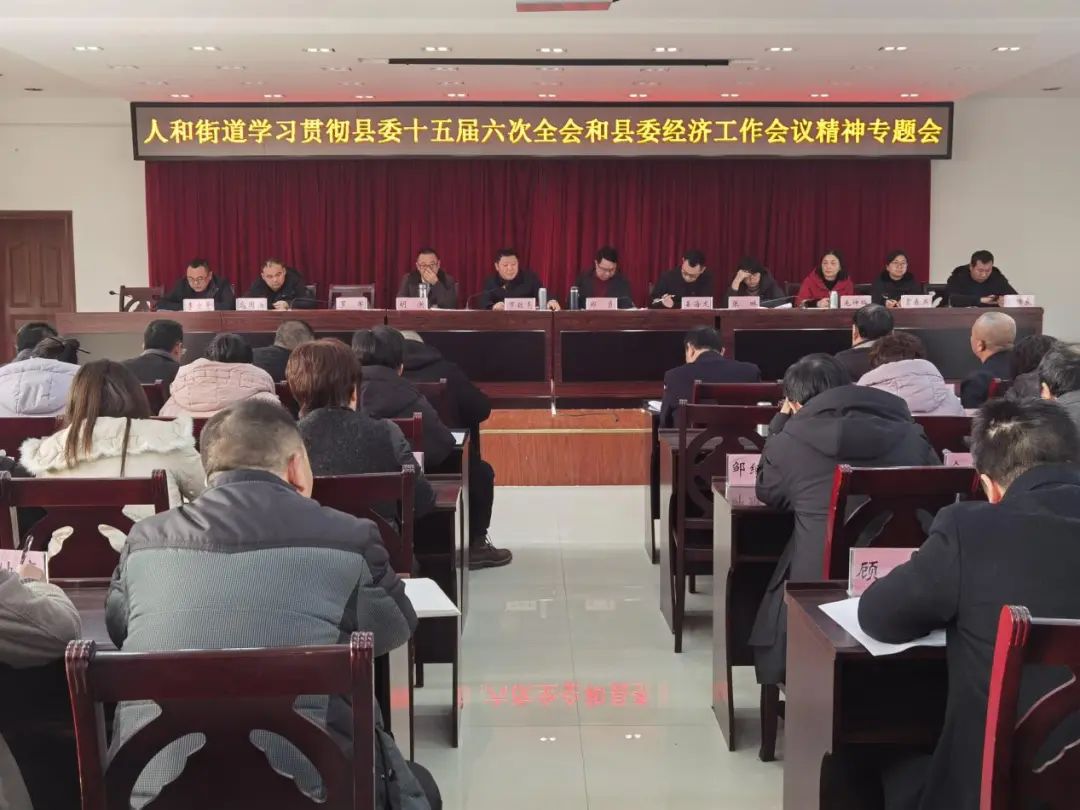 人和街道召开专题会议,学习传达县委十五届六次全会精神。
