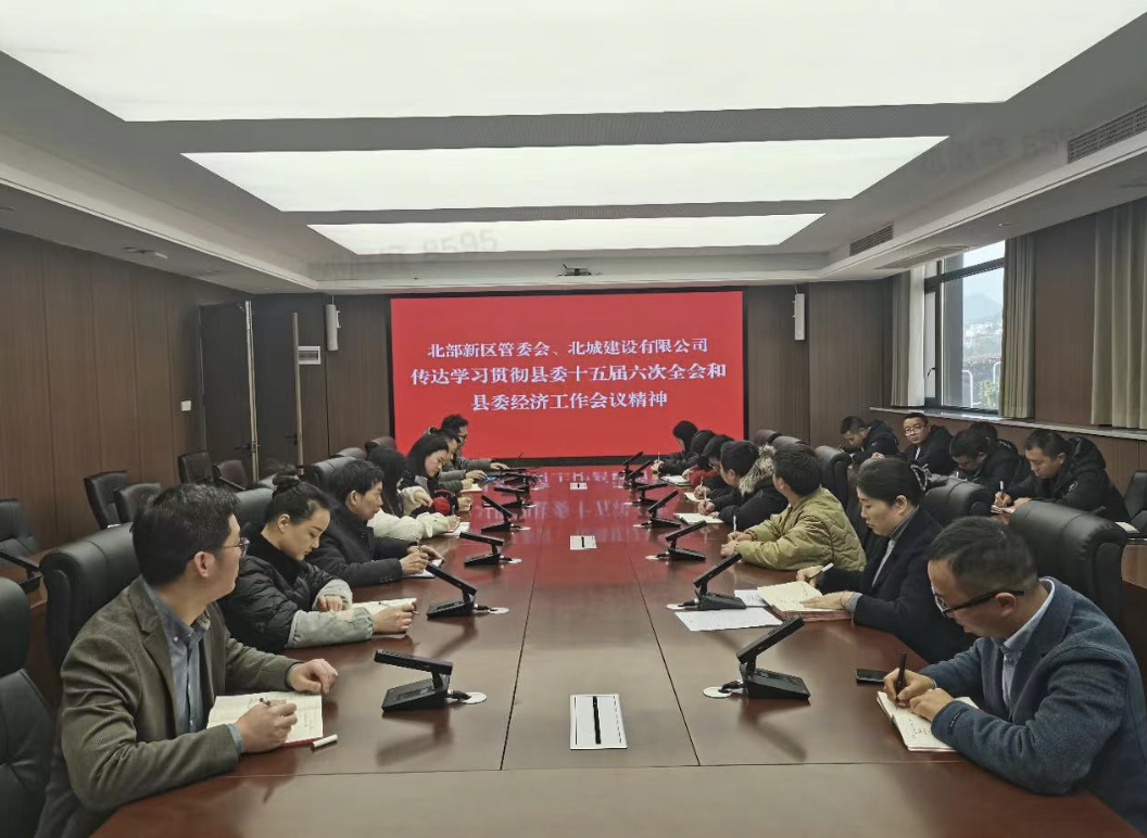 北部新区管委会召开全体职工会,传达贯彻县委十五届六次全会精神。