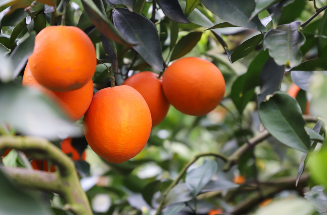 颗颗金黄饱满的柑橘挂满枝头