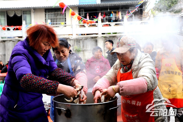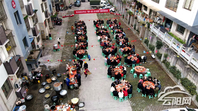 云阳网讯(记者 刘婷 徐锐)今天是农历大年三十,处处都有吃团年饭的习俗,团年饭是每个家庭幸福团圆迎新年的重头戏。在青龙街道亮水坪社区,200余名居民齐聚一堂,在社区里吃起了团年饭。