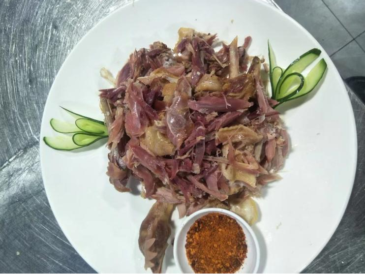 将卤制的鸡肉在阳光下、微风中晾晒一段时间