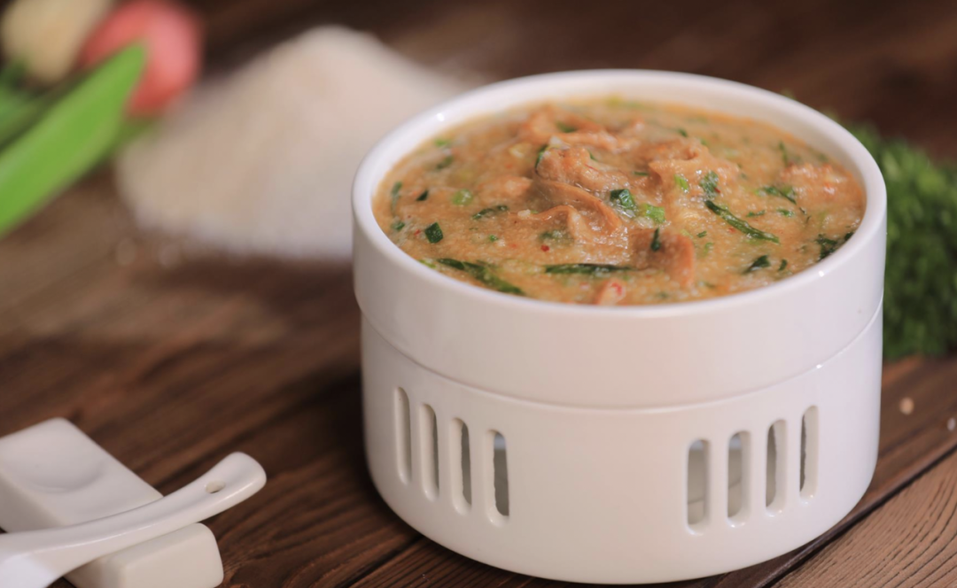 鲊肥肠发酵越久,酸味越甚,1个月启坛食用,酸味适中,坛香十足,更符合大部分人口味。取出的鲊肥肠先上蒸箱蒸半小时,再加清水煮沸,加入青菜、紫苏、香菜等新鲜蔬菜和葱姜、香油调味,鲊肥肠羹便制作完成。经过腌制的鲊肥肠,味道偏咸,做成汤羹,加入新鲜蔬菜,使其咸味适中。这道菜羹,肥肠入口醇厚,细嫩绵软,鲜中带辣,香中裹甜,为众多食客所喜爱。