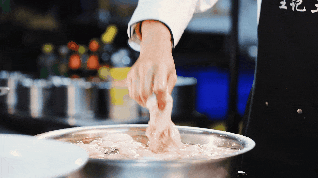 清洗、焯水、切割、腌制、装坛……鲊肥肠羹的制作过程耗时耗力,大体可分为清洗、腌制和烹煮三个部分。肥肠去除瘴臭味,前期清洗是关键。加入葱姜料酒和新鲜柑橘叶,出水3次,摘除肥肠上多余的肥油,再撒上适量面粉,又用力反复揉搓3次,最后再加盐,反复再冲洗3次,整个清洗过程才算完成。