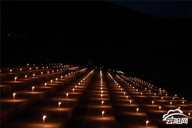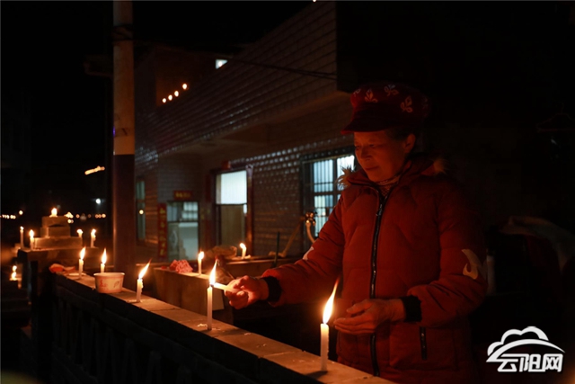 夜幕降临后,村民们全家齐出动,在门前屋后摆放蜡烛。当一排排蜡烛被依次点亮,整个村子被千万盏烛火围绕,犹如灿烂星河。在长滩河畔,千余根蜡烛在夜色中随风摇曳,用蜡烛点亮的堰坪镇logo在夜色中格外耀眼。“我们每年都点灯祈福,希望家人身体健康,平平安安。”村民雷恩珍说道。