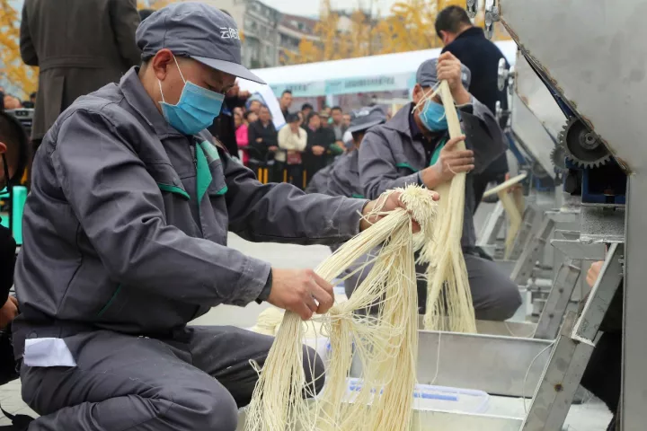 目前,云阳从事面条加工的经营者近20万人,所开面坊超过6万家,遍布全国200多个城市,每年创造产值上千亿元,加上上游面粉等食品原料交易以及调料包等配料加工,一根根细细的面条已“链”成了长长的产业链。面条,不仅是云阳人舌尖上的宠儿,更是无数云阳人养家糊口的生计,寄托着他们增收致富的梦想。