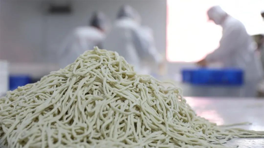 “目前厂房有大大小小的设备28台,因为现在我们要打造每个城市的特色面条,不能用大的设备,我们还是要用从父辈传下来的那种压面方式。”对于出生在制面世家的梁锋而言,制面不仅仅是谋生的手段,而是印刻在骨子里的传承。