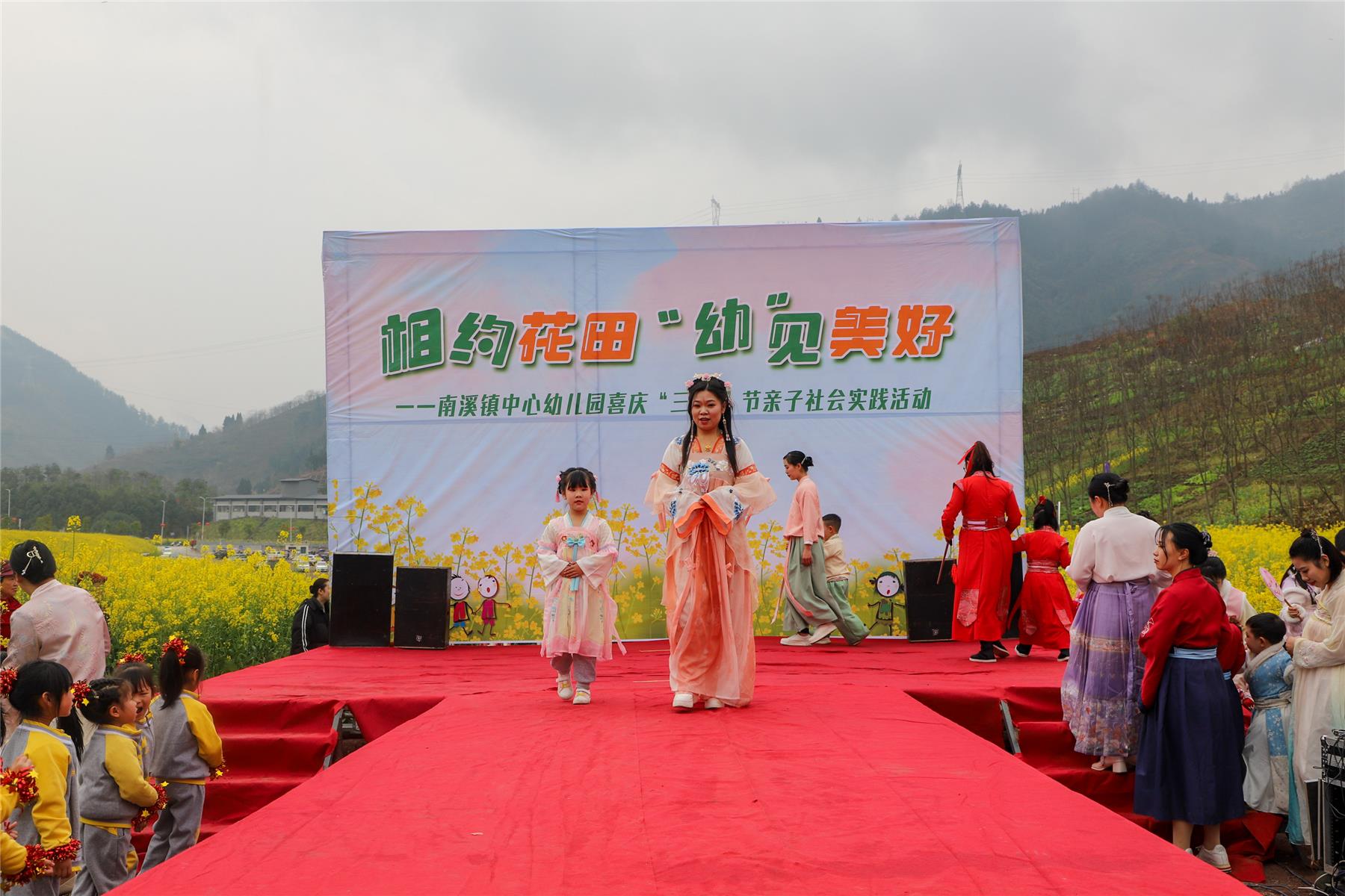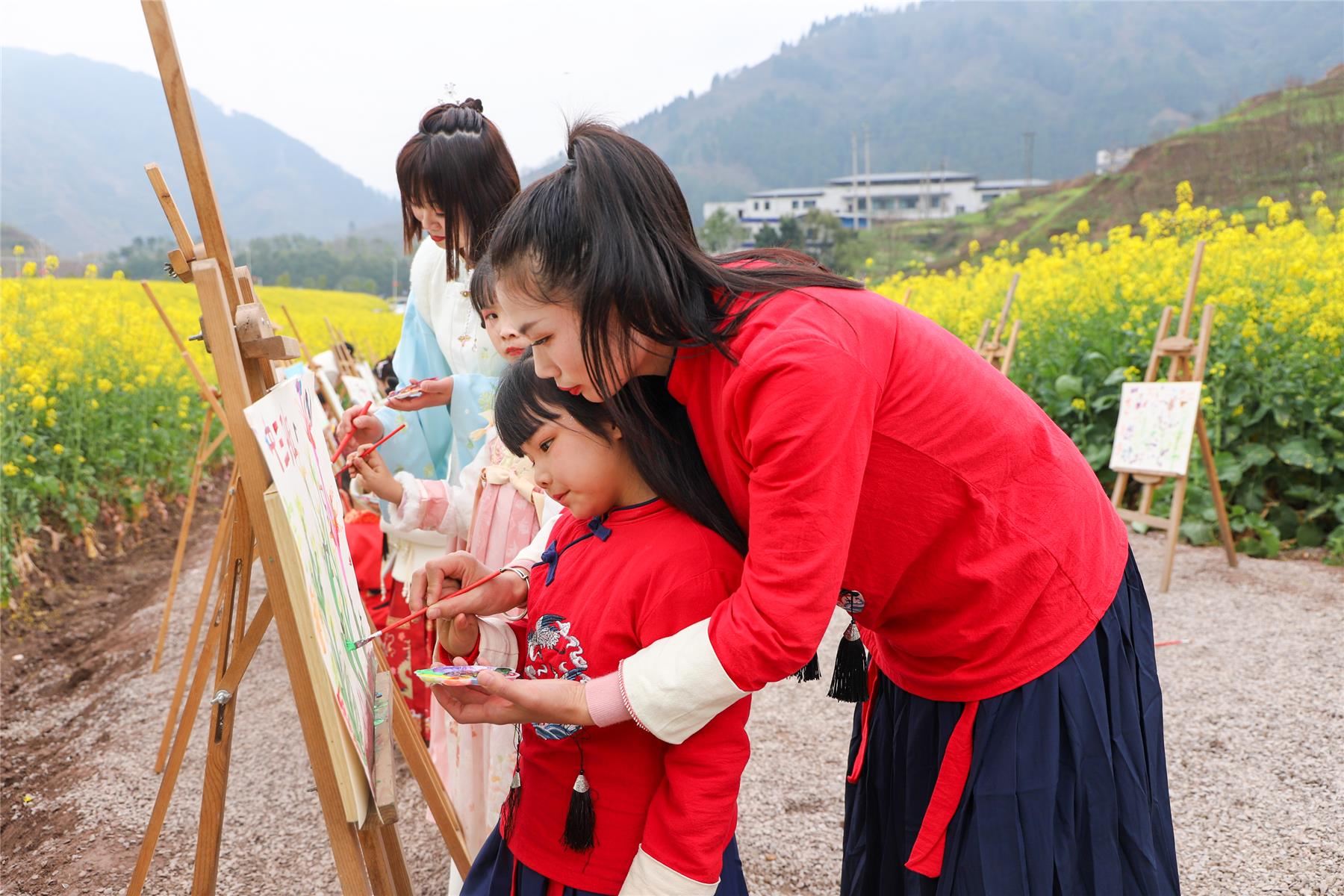 花海映丽人,人与花媲美。除了女教师们用花海汉服秀的方式过妇女节外,云阳县南溪镇中心幼儿园的师生们还邀请女性家长相约花田开展了一场亲子汉服秀、亲子绘画游等社会实践活动。在寓教于乐中欢度妇女节,既增进了亲子感情,又让小朋友们感受了大自然的独特魅力。