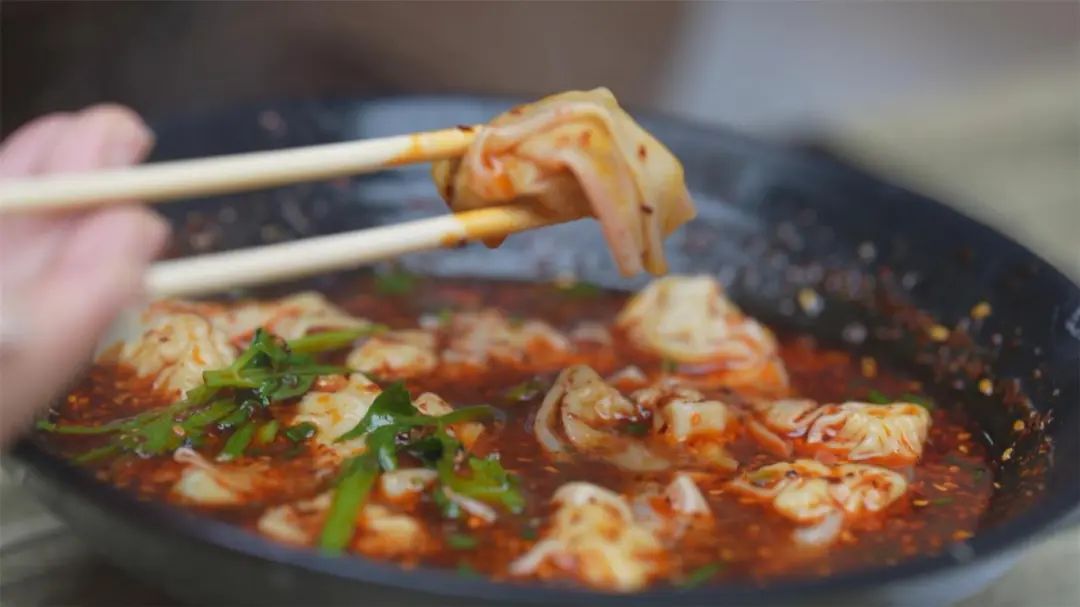 馅少皮薄,一碗狗耳朵包面只需要几十秒便能起锅捞出。油辣子的香味瞬间弥散开来。恍然不觉间,一碗包面已经见底,只剩唇齿间芝麻和油辣子的焦香。而正是这种精湛的制作技艺,使得云阳包面成了地方特色小吃中的佼佼者。