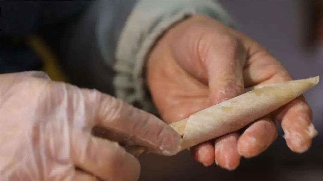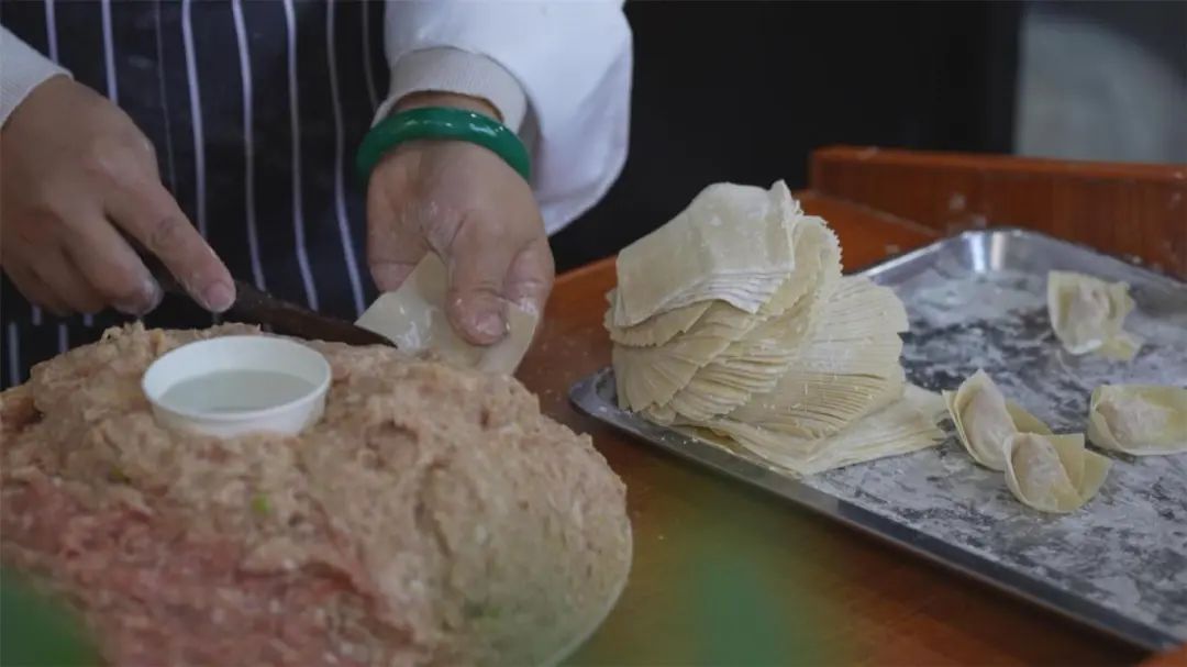 “狗耳朵包面迄今为止一直采用手工制作,一方面能让面筋充分提炼出来,另一方面用手工揉更能够让炒制的馅料与肉缓慢地充分融合,而手工制作也更能够让食客体验到传统老味道。”冉绍军介绍道。