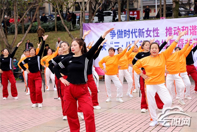 云阳网讯(记者 郑红均)3月8日,由县文旅委主办,县体育总会、县健身操舞俱乐部承办的庆“三八”节健身操舞暨非遗文化展演活动在彭咏梧广场举行。