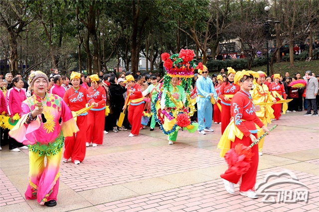 活动现场,非遗项目“彩龙船”亮相时,更是吸引观众眼球。“彩龙船”是流传于民间的一种歌舞,以彩龙船配合富有特色的民间唱腔进行表演。唱腔以老百姓喜闻乐见的内容进行即兴表演,唱腔高亢有力、旋律优美,整个表演内容丰富、形式多样,引得现场欢呼声不断。