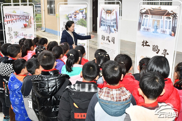 在农坝小学,云阳博物馆工作人员将展览图文摆放在学校操场。来自县博物馆的工作人员为所有师生讲解了展板内容,图文并茂的展览吸引了一批批学生前往参观,他们在每张展图前时而驻足观赏,时而三五成群交流着各自的感受,活动现场气氛热烈。