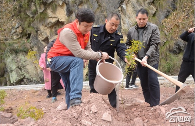 植树现场,大家干劲十足,统一协作,密切配合,挖土、种植、浇水,志愿者们充分发挥团队合作精神,栽下的是美好展望,留下的是绿水青山。