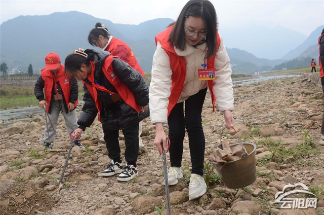活动中,学雷锋志愿队穿梭在长滩河畔,捡拾河道中的垃圾,用实际行动洁净“母亲河”。随后,他们又肩扛锄头、手提水桶来到了龙门滩参加植树活动。