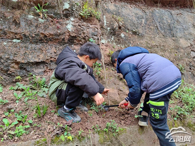 活动中,孩子们热情高涨,干劲十足,他们用小锄头、小铲子认真挖出一个个土坑,小心翼翼把树苗放入坑内,将土埋回洞里并压实,再给小树浇上水,每一道工序都一丝不苟,确保树苗栽种一棵、成活一棵。