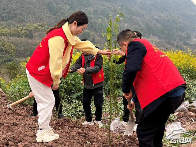 云阳网讯(通讯员 田兴平)3月12日,天景初中组织部分党员教师和团员开展了以“我为祖国植十棵树”为主题的植树护绿活动。
