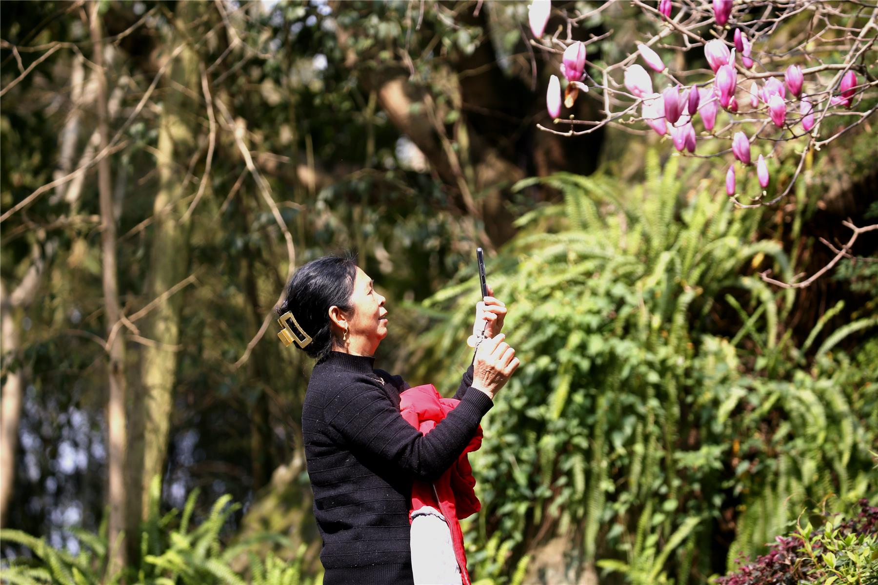 “玉兰花开得格外鲜艳,颜色也非常漂亮,趁今天天气好上来看看,让人心情很舒畅。”市民孙女士说。