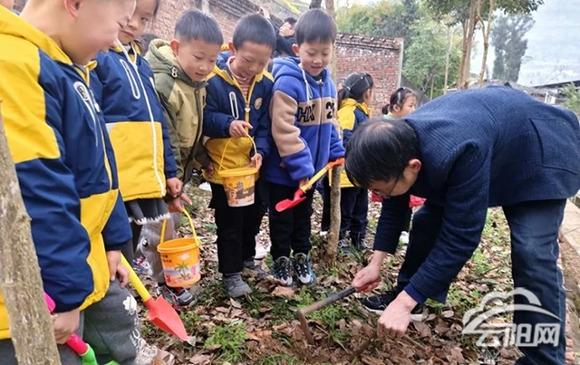 双土镇中心幼儿园开展“我为春天添新绿”植树活动。