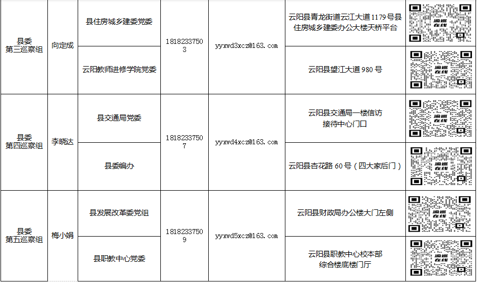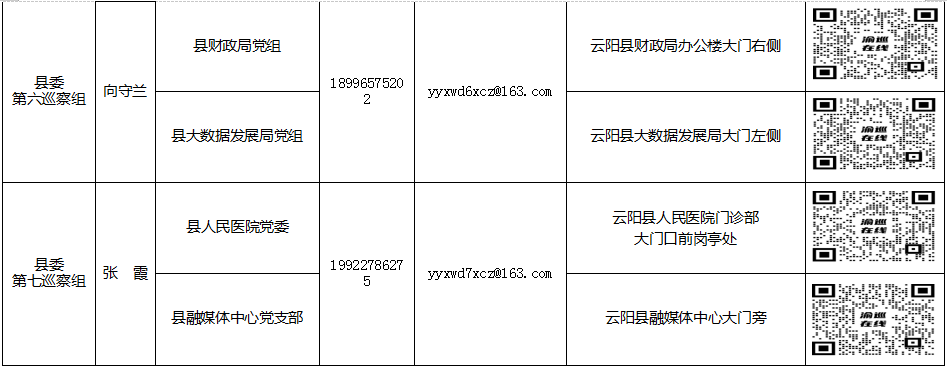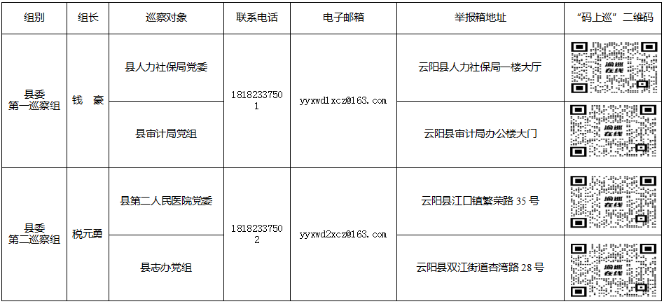 十五届县委第六轮巡察各巡察组巡察对象及联系方式
