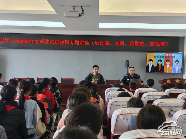 云阳网讯(通讯员 吴方莉)3月27日下午,宝坪小学特邀宝坪派出所负责人、学校法治副校长为该校师生作“以‘法’为名、护我前行”主题法治讲座。