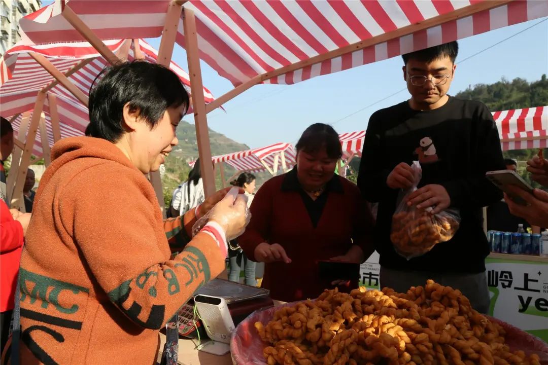 渠马镇村民胡翠兰手上忙个不停,她的摊位面前摆放着一堆金灿灿的麻花,她一边给顾客称麻花,一边收钱,脸上洋溢着幸福的微笑。“我才来十分钟不到,今天带来的30斤麻花就卖了一大半,特别受欢迎。”胡翠兰表示,岭上夜市给她提供了卖货的平台,让她挣到了钱,以后她还要积极参加镇上举办的各种活动。