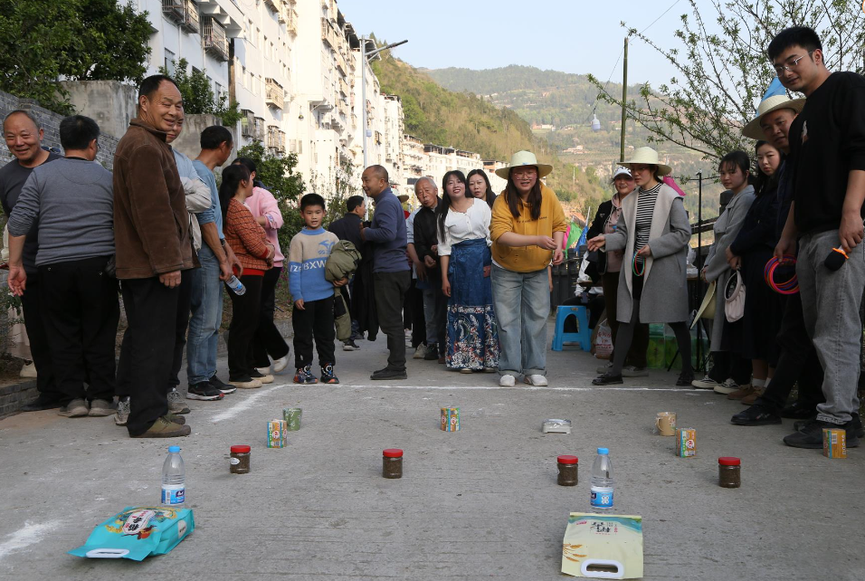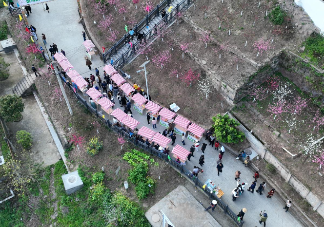 村民们一同赏桃花、品美食、逛市集、玩游戏