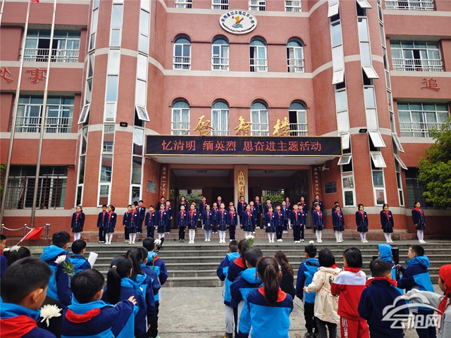 主题升旗仪式上,学校相关负责人以《清明祭英烈,丰碑砺青春》为题,给全校学生上了一堂生动的主题大思政课,勉励孩子们从革命先烈们的光辉足迹中汲取奋进力量,争做有理想、敢担当、能吃苦、肯奋斗的新时代少年先锋。