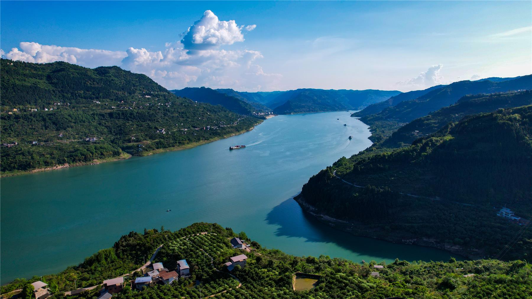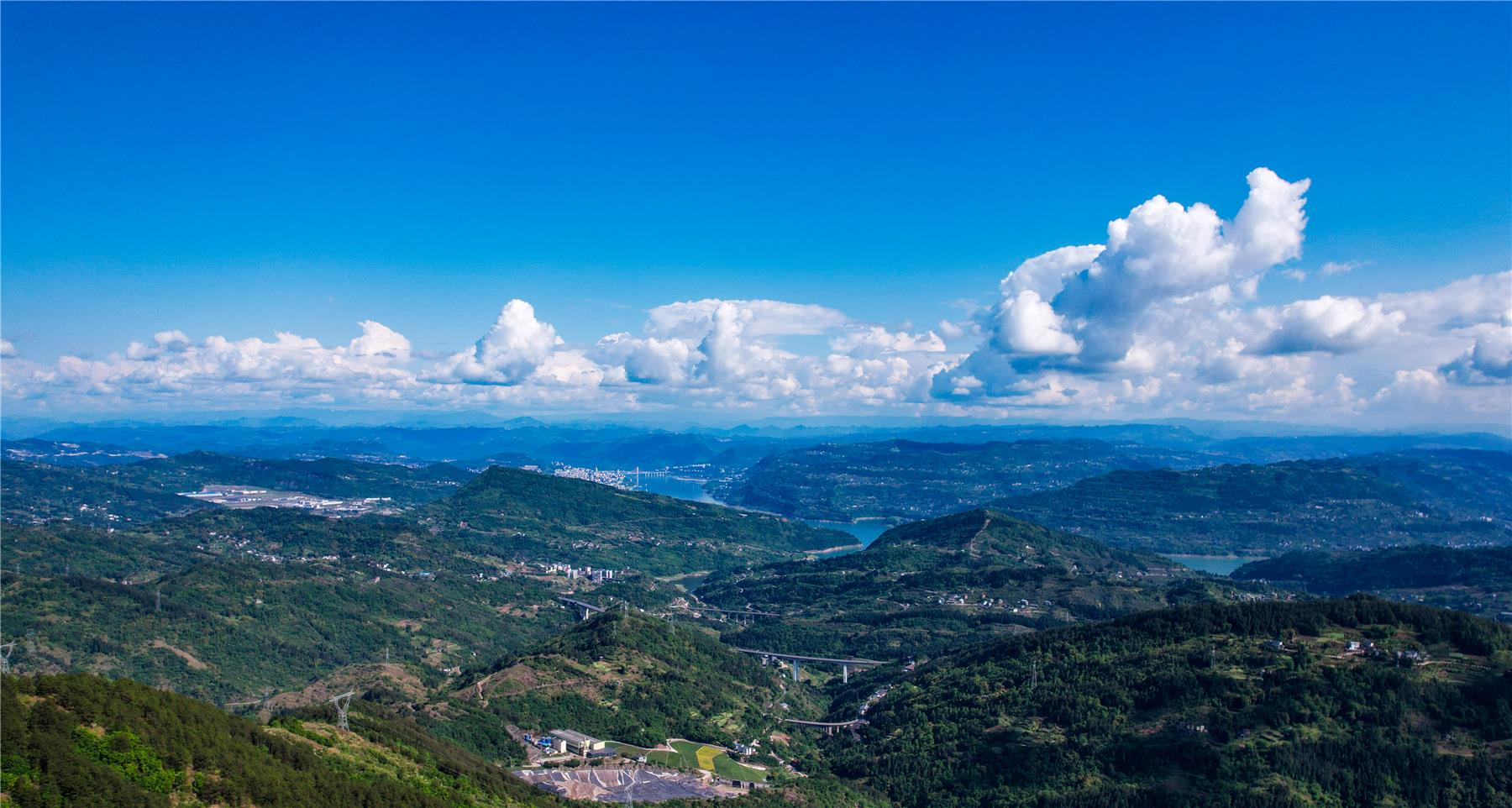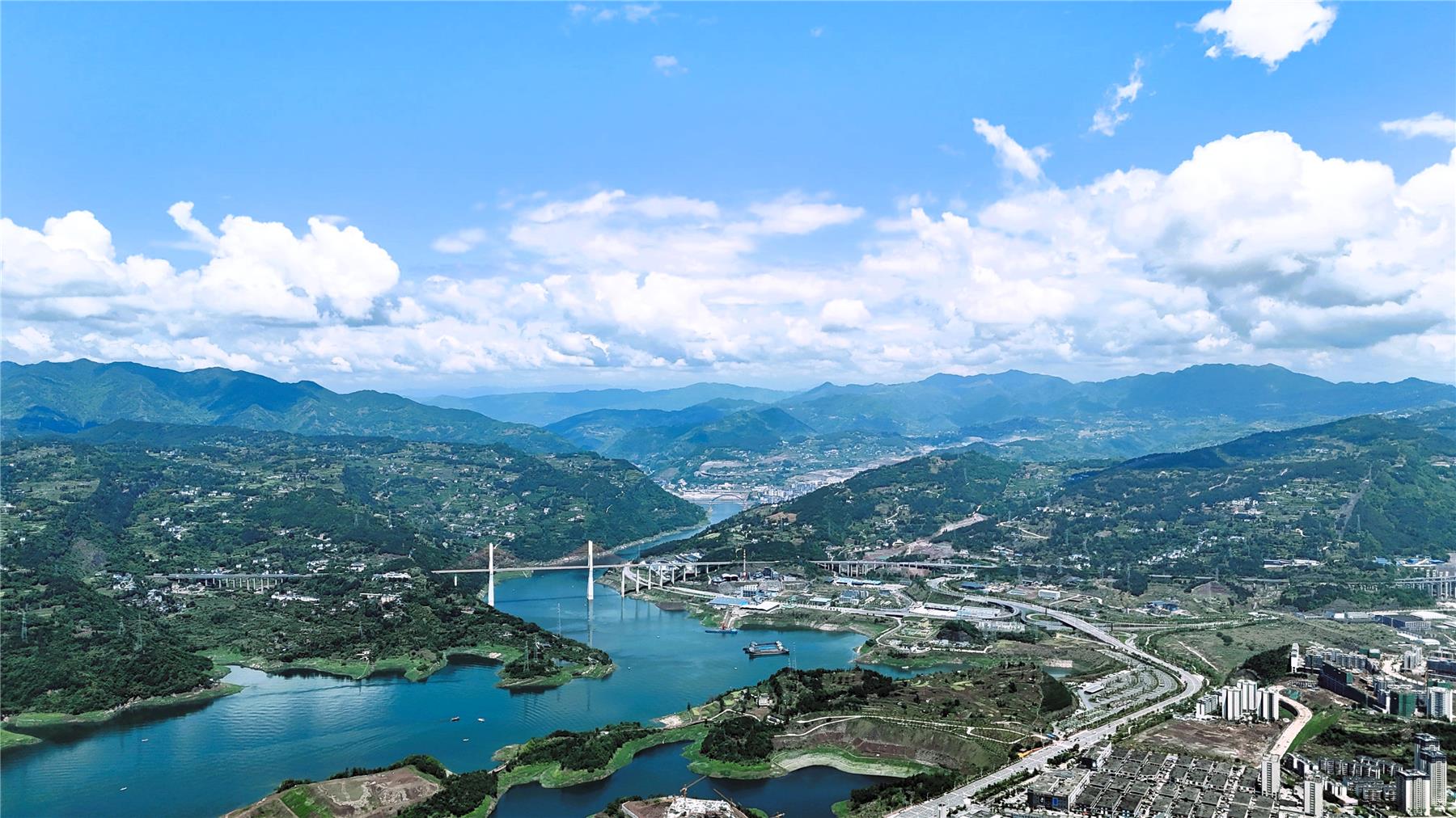 在云阳环湖绿道,从空中俯瞰,一江四河,山清水秀。雨后的天空一片蔚蓝,朵朵白云随风流动,为天空增添了几分灵动。江水清澈如镜,山色青翠欲滴,蓝天、白云、碧水、青山共同绘就一幅秀美生态画卷,而在云阳人和街道晒经村,千亩柑橘林扮靓长江江岸,来往船舶穿行于江面,蓝天白云下,汽车沿山路行驶,掠过一栋栋青瓦白墙的民房,与一江碧水、两岸青山交相辉映,一幅诗意景象跃然眼前。“雨过天晴以后,天空非常洁净,蓝天白云,拍照很出片。”市民王小艳说。