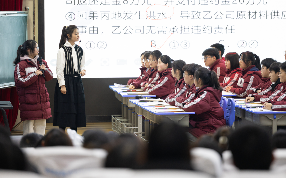 自主教育与双主互动教学也是外国语学校的办学特色,前者着重锻炼学生的自理、自律能力,推行学生自主管理,让学校和班级“人人有事做,事事有人管”;后者改变教师“满堂灌”、学生“被动学”的传统课堂教学状态,大幅度提高课堂教学效率和教学质量,培养学生语言表达、动手实践、合作探究等核心素养,真正将素质教育落地在课堂上。