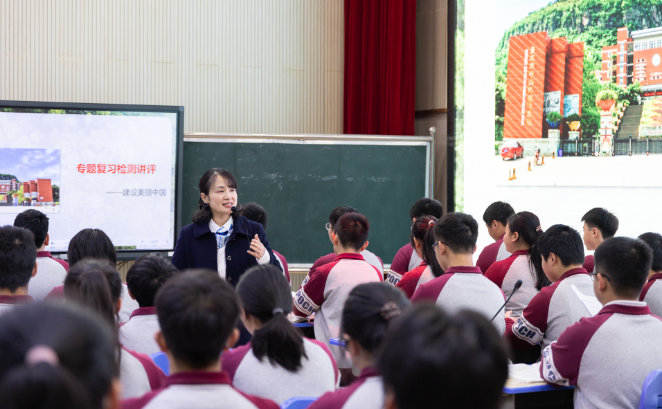 此外,外国语学校为教师的成长构建多种激励机制,实行全员竞聘上岗、星级教师评选表彰等制度。为教师展示搭建各种平台,鼓励教师“走出去”,50多名教师到北京、上海、四川、云南、贵州等地汇报展示、帮扶送教、开展培训等,20多名教师在全国、全市专业竞赛中夺得一等奖。今年4月,该校高中地理教师秦普艳就在重庆市高中地理优质课大赛中获得一等奖。