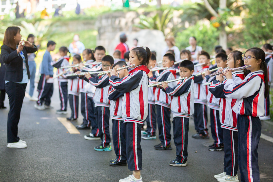 在小学阶段,为学生提供品德、科学、语言、艺术、健康五大类63门拓展选修课程,固化自立节、科技节、英语节、艺术节等八大主题实践课程,尊重学生个性,保障全面发展;在初中阶段,为学生提供语言与文学、数学与科技、人文与地理、艺术与体育四大类31门拓展选修课程,进自然、进社区、进军营等“五进”实践课程,固化理想、读书、青春等十大主题展示活动,保障学生自主和谐发展;在高中阶段,成立学生生涯规划中心,提供学科竞赛、大阅读、艺体特长等五大类20多门拓展选修课程,并逐步引入国际课程、创客教育、STEM课程,为学生开辟升学、艺体、留学等多元发展通道。