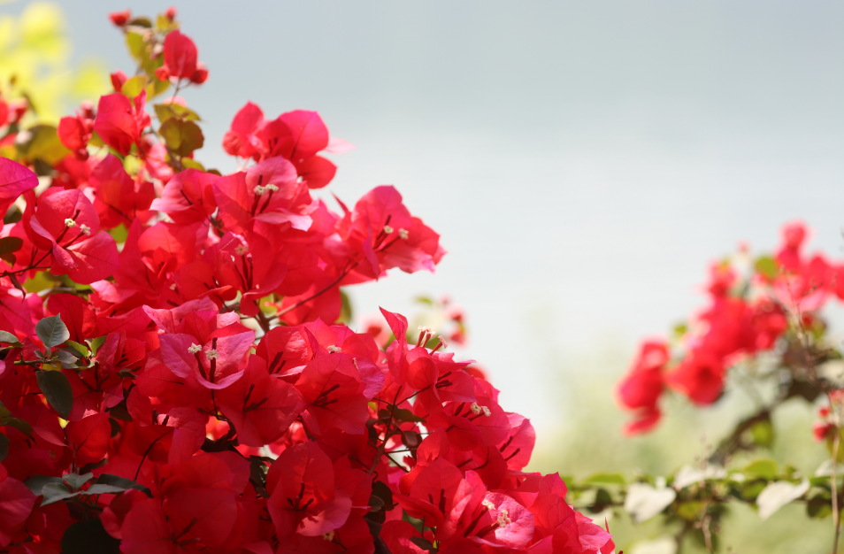 色彩明艳的三角梅、素雅清新的蔷薇花
