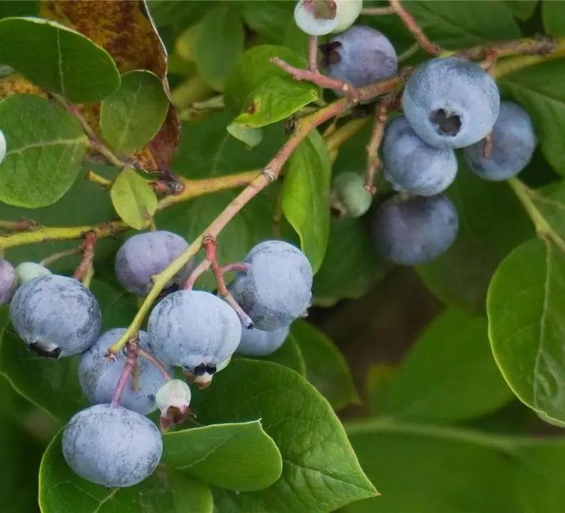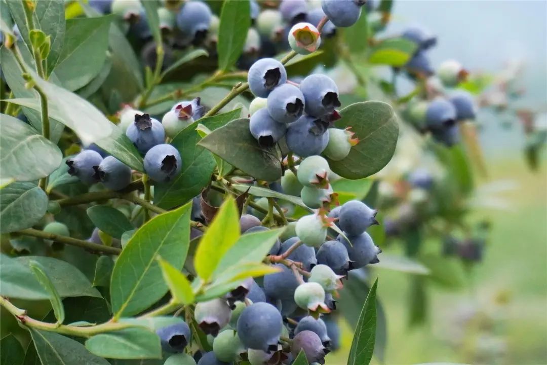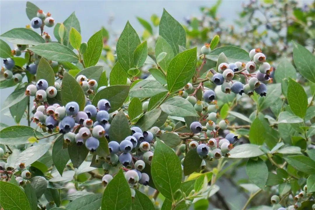 蓝莓树上挂满了密密麻麻的蓝紫色果实