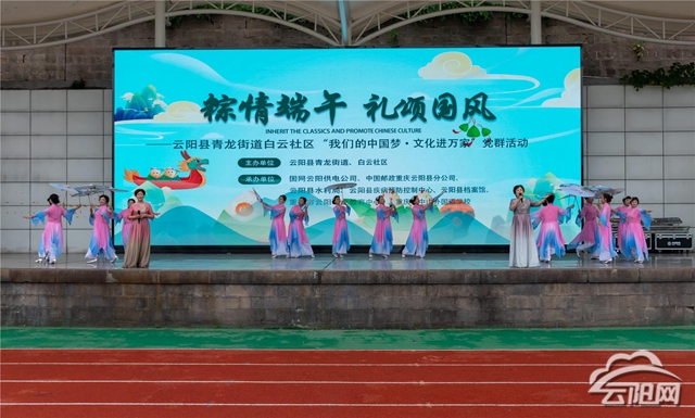 活动伊始,主持人巧妙地运用模仿话术,以生动的语言描绘了端午节的起源、习俗和意义,使现场观众仿佛穿越到了古代的端午节庆典现场。文艺汇演在一场情景剧《端午知多少》中拉开序幕,舞蹈《风之马》、独唱《中国人》、健身《八段锦》、歌伴舞《山水云阳情》等形式多样的文艺节目轮番上阵。舞台上演员们表演形式生动、接地气,用歌声、舞姿感叹美好生活,舞台下各族群众鼓掌、喝彩,并拿出手机记录着精彩的瞬间。