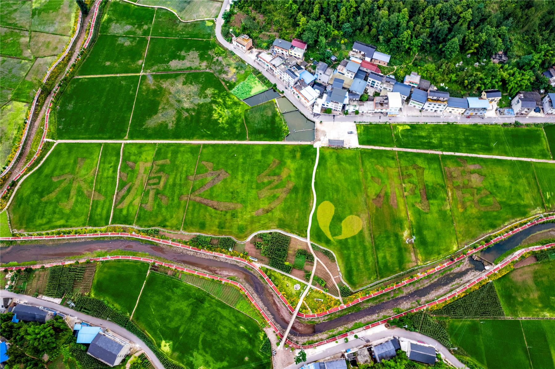 云阳网讯 (记者 刘兴敏)6月24日,云阳县洞鹿乡五彩稻田“水源之乡 洞鹿”主题显雏形。