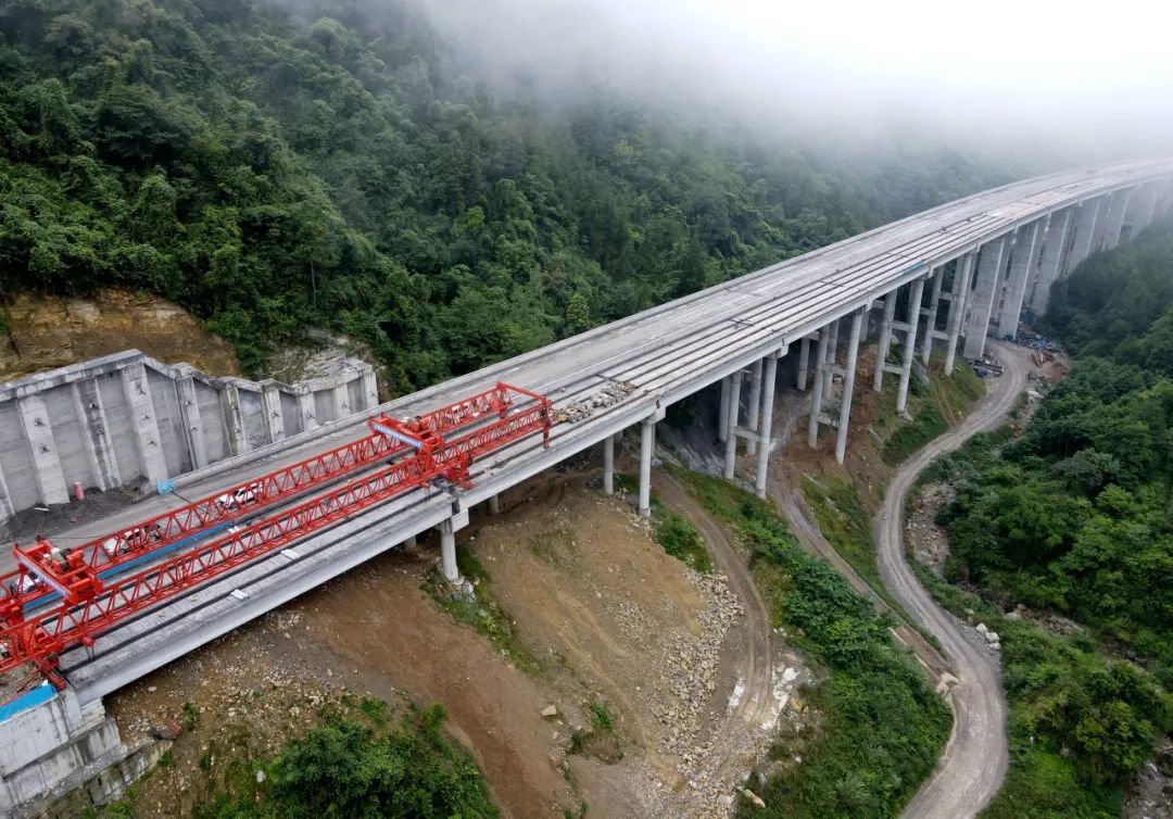 近日,巫云开高速(巫溪—云阳—开州)TJB1标段溜子河大桥成功实现全线连通,这一工程建设的重大进展,标志着巫云开高速TJB1标段的所有桥梁架设任务已顺利完成,为巫云开高速全面竣工通车奠定了坚实的基础。