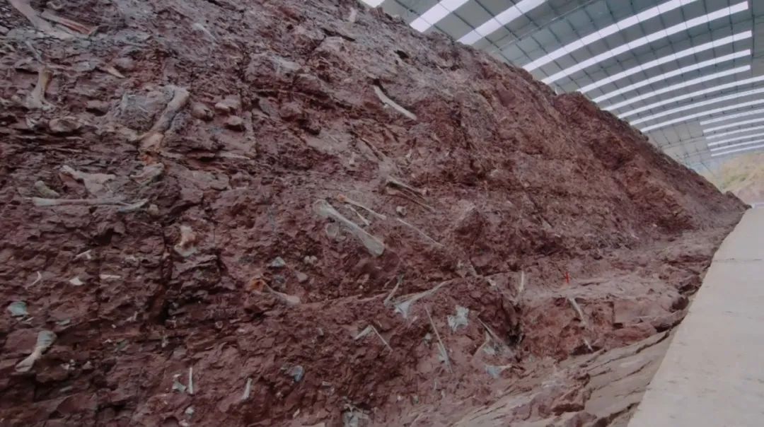 “朐忍渝州龙”化石所在的普安恐龙化石墙