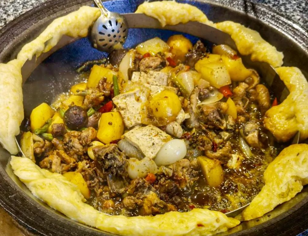 柴火鸡采用柴火慢炖的方式烹饪,鸡肉口感鲜美,鲜嫩多汁,香气扑鼻,加入的蔬菜、香料和调料也为菜品增添了丰富的风味,令人回味无穷。