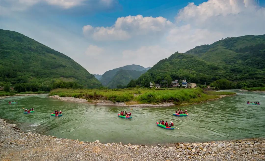 长滩河漂流全长约12公里,其间石笋河、老鸦峡、黄陵峡景点众多,具有险、奇、怪等特点,两岸峭壁如削,崖壁上溶洞密布,时有麋鹿、黄羊、青麂活跃其间,景色十分迷人。