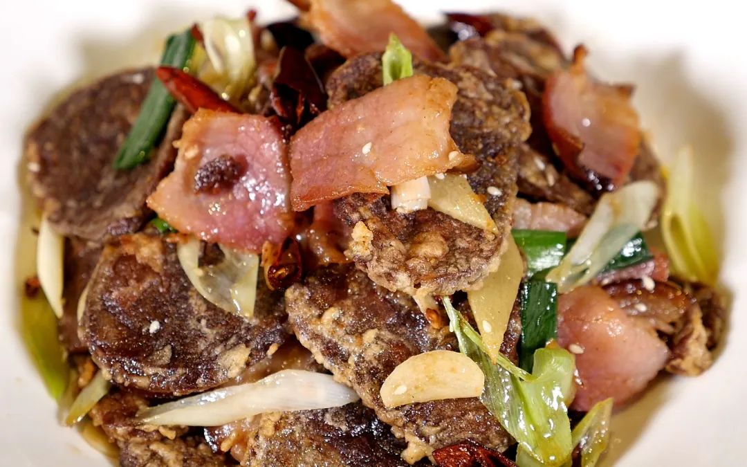 高粱粑由高粱米制成,将高粱米打碎加水搅拌后蒸制形成高粱粑,将制作好的高粱粑与腊肉一起翻炒,腊肉的香味和高粱粑粑的香味融合在一起,香味绵长。